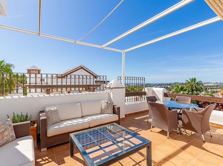 A fantastic penthouse duplex apartment with stunning views over the ocean, mountains and beautiful surroundings of Nueva Andalucia.