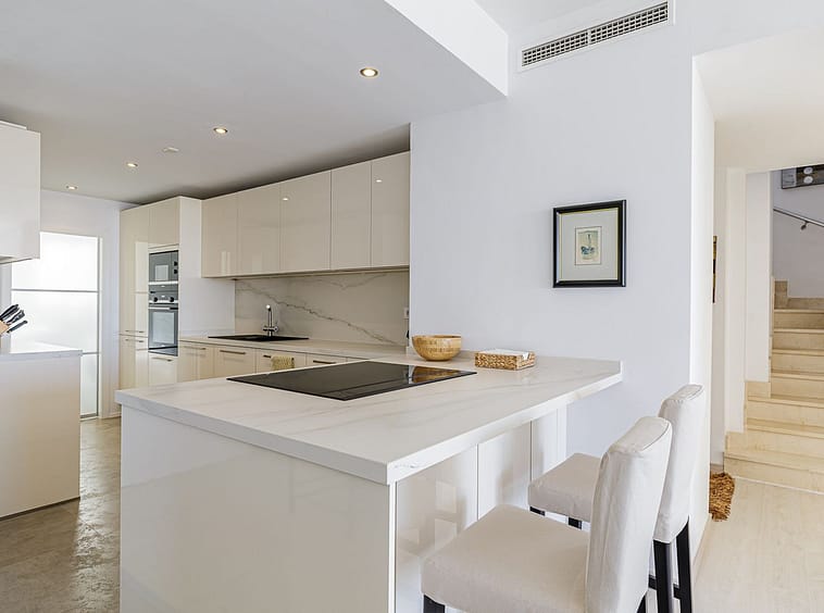 It’s located in the golf valley of Nueva Andalucia nearby Aloha, Las Brisas and Los Naranjos golf courses. In the vincinity there’s a small lake and many trails for nature walks. You reach a big range or shops and restaurants just a few minutes by car and to the beaches it is a 10 min drive.