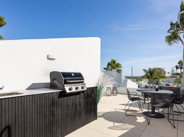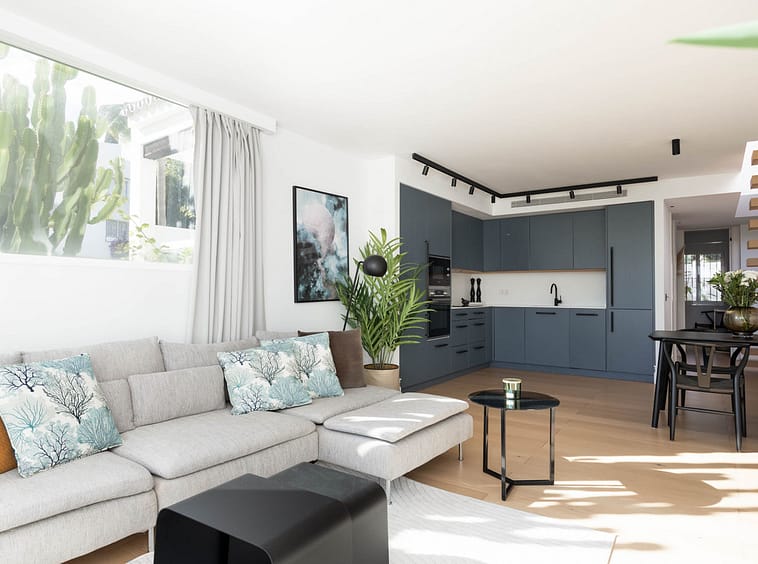 Welcome to this elegant 2-bedroom apartment, ideally positioned on the top floor in the heart of Nueva Andalucía—overlooking the renowned Aloha Golf Course and offering spectacular sea, mountain, and golf views. This thoughtfully renovated home combines modern comfort with Mediterranean charm.