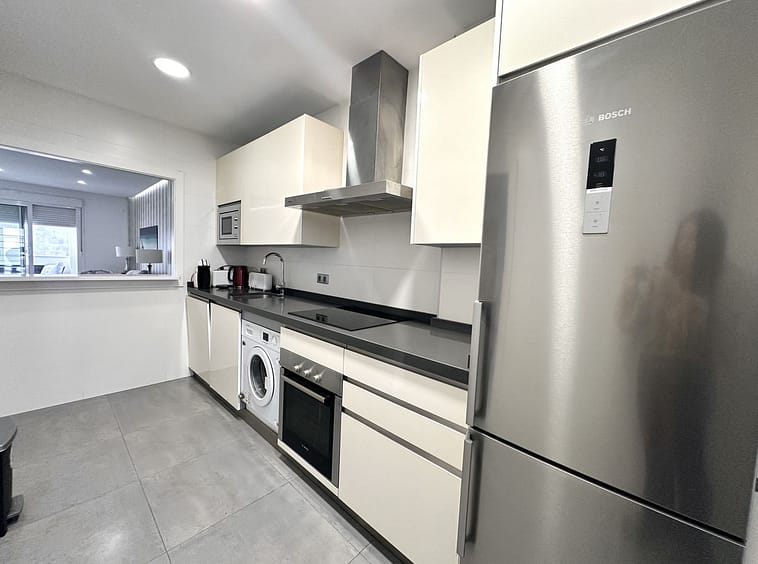 The kitchen is fully equipped and includes a convenient separate laundry area. A functional and comfortable layout, ideal for a primary residence, a second home, or an investment.