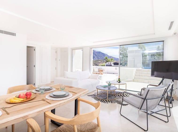 This modern 2-bedroom, 2-bathroom apartment is nestled in the prestigious Golf Valley of Nueva Andalucía
