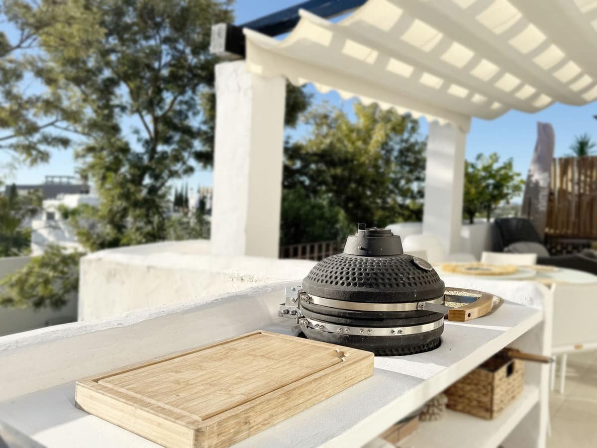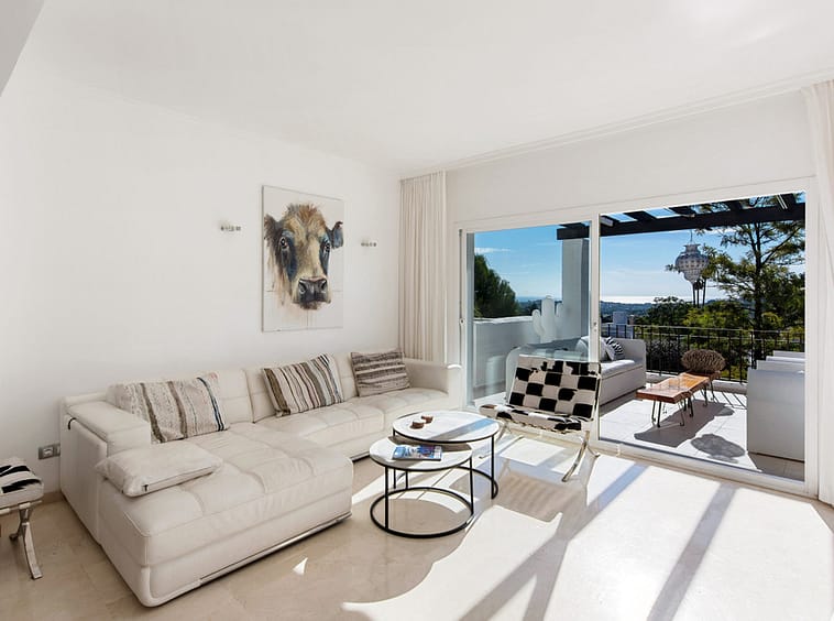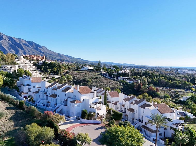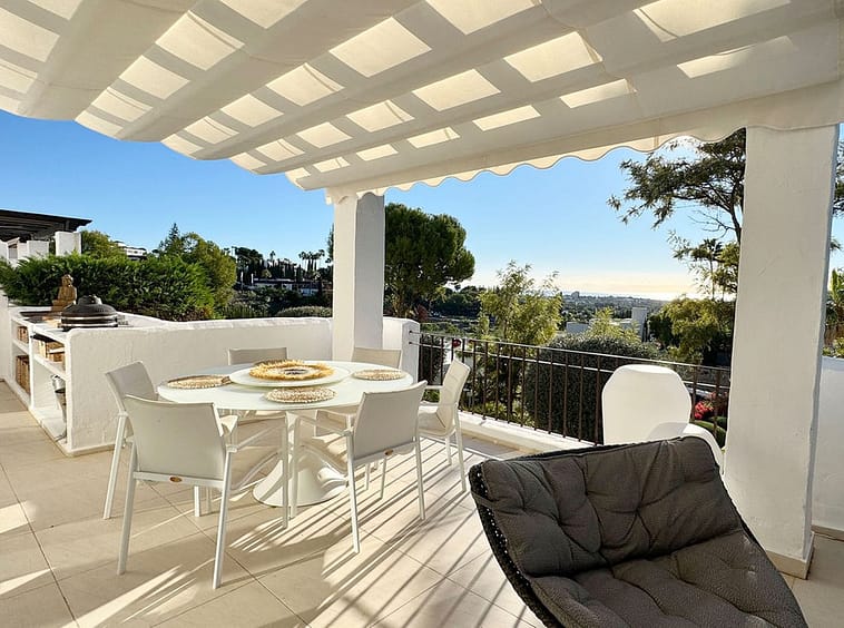 Situated in a quiet residential area of Nueva Andalucia's Golf Valley, this luxurious and sought-after gated development offers immaculate grounds, a large communal pool and a superb Southerly orientation as well as stunning panoramic sea views.