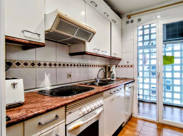 The apartment is part of a quiet and very well-maintained community with tall subtropical trees and plants, Andalusian-style fountains, a large swimming pool with access to showers and toilets, and even a paddle tennis court.