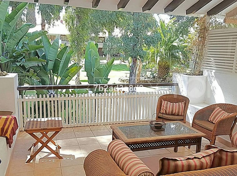 The spacious terrace provides a tranquil retreat with views over the garden and swimming pool. The apartment features a fully equipped open-plan kitchen with modern appliances, as well as hot and cold air conditioning for year-round comfort.