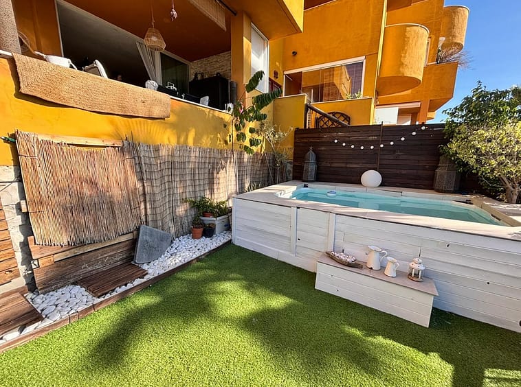 Spacious living/dining room, fully equipped separate kitchen, terrace with beautiful views and private garden with swimming pool. Two large bedrooms with fitted wardrobes and two full bathrooms, the main one en suite.