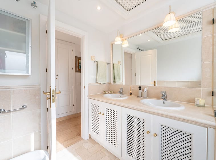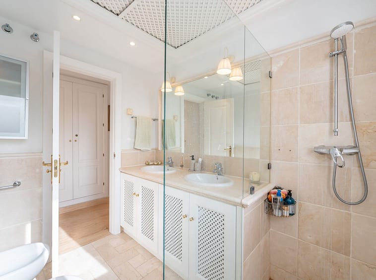 This apartment has two large bedrooms, with built in wardrobes…both with large windows allowing lots of natural sunlight. And a great size bathroom, with marble throughout is shared by the two bedrooms.