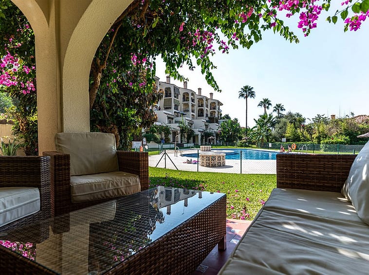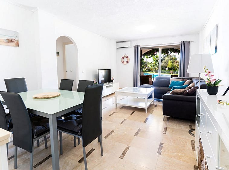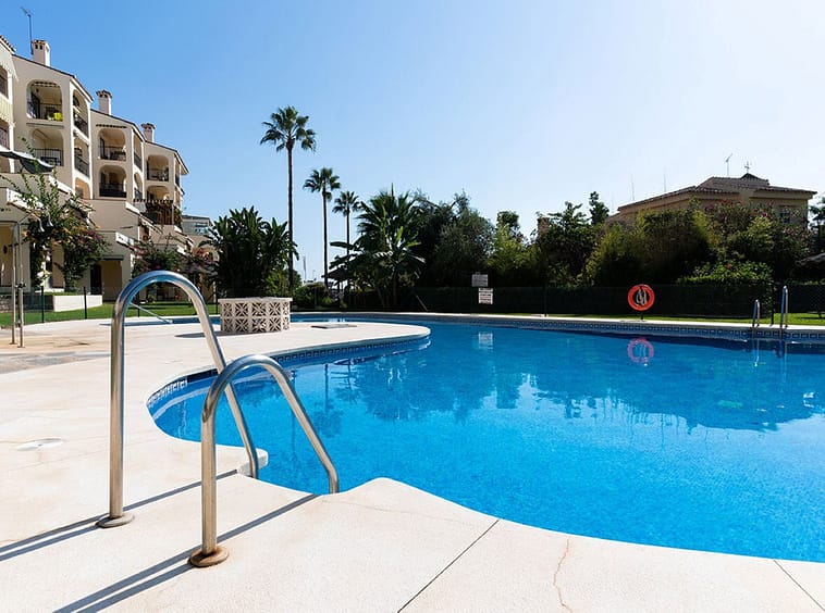 Fabulous ground floor apartment with direct access to stunning community gardens and pool. With rental licence!! This wonderful apartment is located in the heart of Riviera del Sol, immediately next door to Riviera Sports Club, with its vast array of activities including tennis, padel and gymnasium. Within a short walk are a selection of bars, restaurants, shops, the beach and public transport and Miraflores Golf and Tennis Club closeby too!