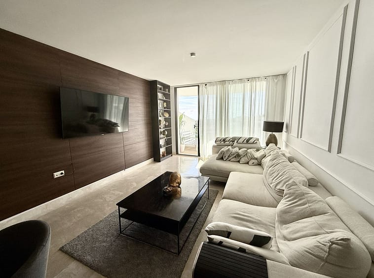 FABULOUS PANORAMIC SEAVIEWS AND FULLY REFORMED APARTMENT!!! This immaculate and bright property comprises of entrance hall, luxury fully fitted open plan kitchen, lounge/dining room with patio doors leading to an amazing full apartment width terrace, south west facing for almost all day long sunshine and enjoying the most incredible sunset and sea views. In addition there are 2 double bedrooms with fitted wardrobes and 2 bathrooms. Accessed via lift or stairs, the property has a large underground carparking space and storage room. Sold with quality furnishings also. The community is immaculately kept and subtropical plants, lawns and of course the fabulous swimming pool!