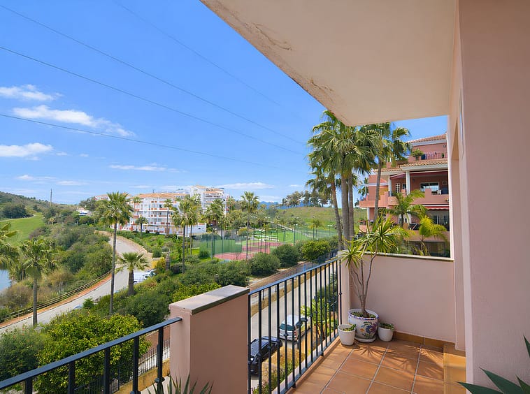 It features a spacious living room with direct access to a beautiful terrace, from which uninterrupted views of the golf course can be enjoyed, ideal for relaxing and making the most of the Costa del Sol climate.