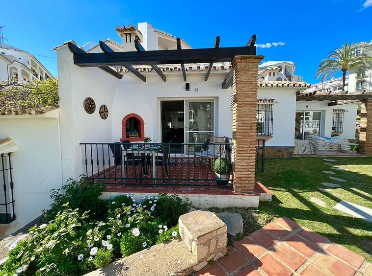 Inside, the bungalow features 2 spacious bedrooms, each with its own ensuite bathroom. A fully equipped & renovated modern kitchen opens up to a generous living area with fireplace leading to a lovely garden terrace and panoramic sea views. There is also a convenient guest toilet at the entrance.