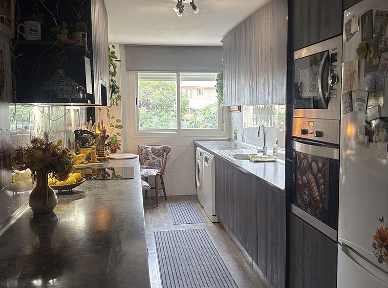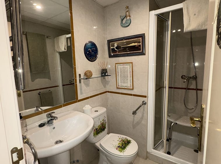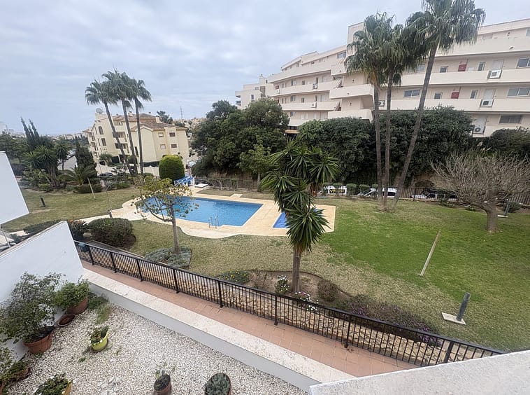 Spacious 1st floor apartment in a lovely community within walking distance to the Miraflores golf course. This apartment gives you two good size bedrooms with fitted wardrobes both with access to the back terrace, the master bedroom there is a large un-suite bathroom that has recently been renovated and there is a smaller 2nd shower room. The kitchen is fully equipped, and it has also been renovated. The living room is large with 2 double doors leading to the front terrace, from there you have sea and pool views. It sold with private parking and storeroom in the communal underground garage.