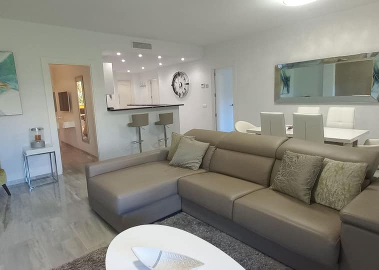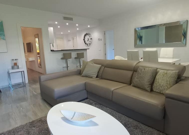 This exceptional two-bedroom apartment has been exquisitely renovated to an impeccable standard, offering an elegant blend of contemporary design and comfort. It is well positioned withint the complex as it is frontline to the golf over looking Miraflores Golf Course .Mijar Golf is an exclusive gated community, the property enjoys a privileged setting and tranquil surroundings.