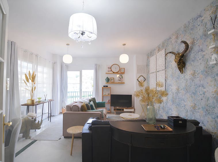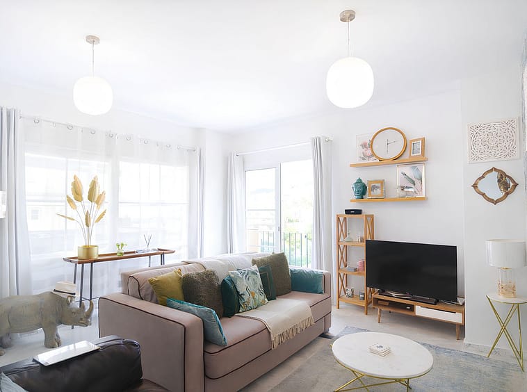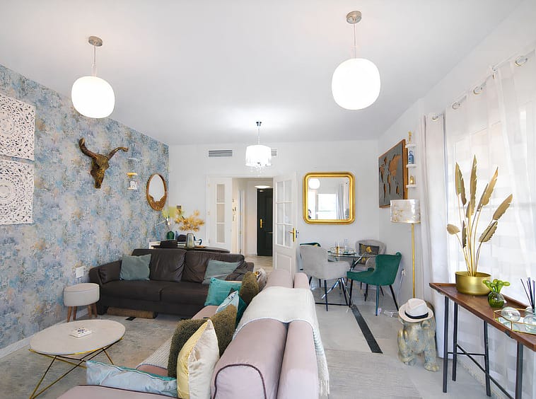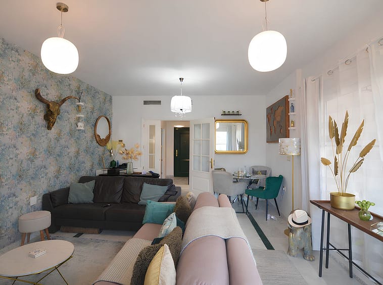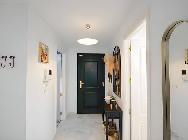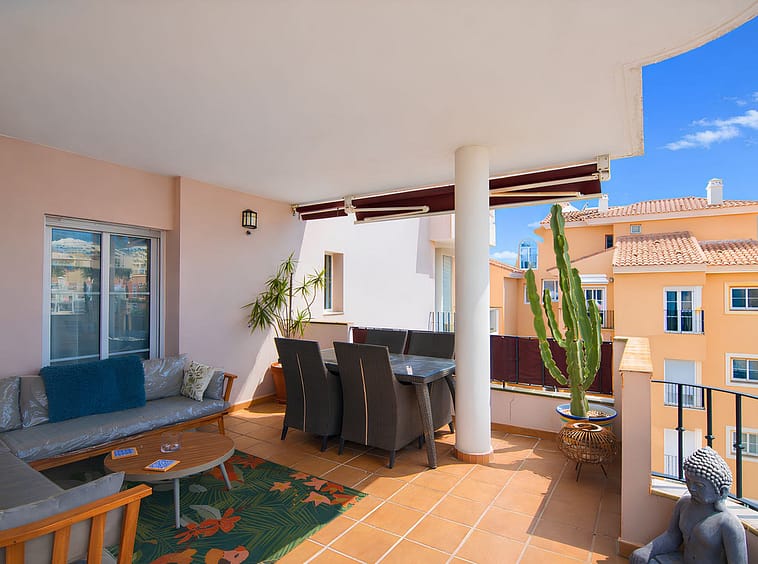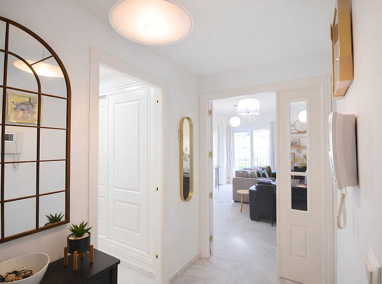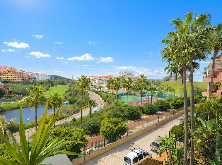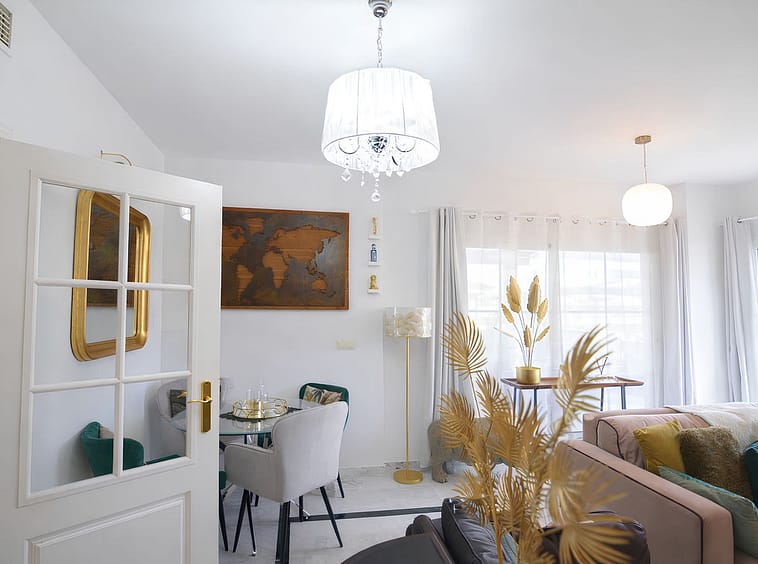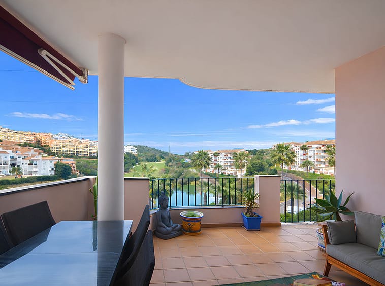 It features a spacious living room with direct access to a beautiful terrace, from which uninterrupted views of the golf course can be enjoyed, ideal for relaxing and making the most of the Costa del Sol climate.