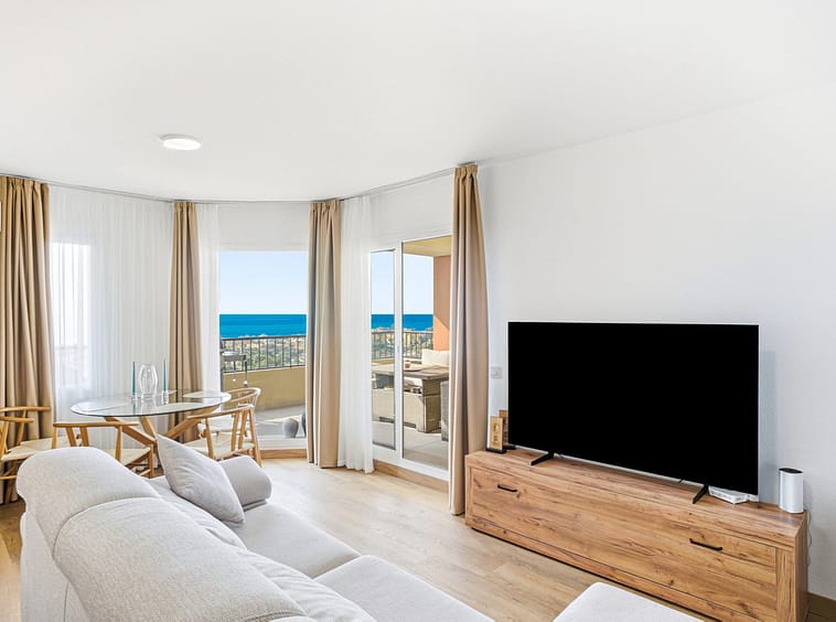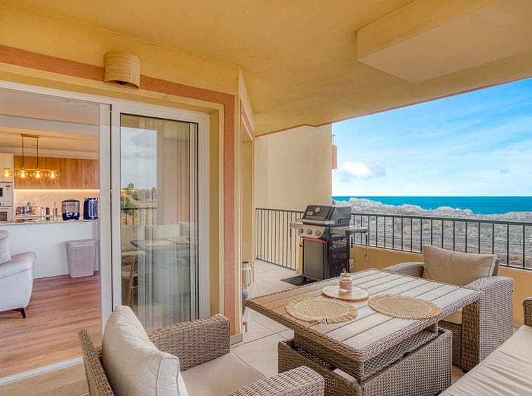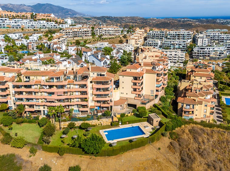 Impeccable, south-facing two-bedroom apartment, located in the gated community of Terrazas del Sol, a beautifully maintained complex in the higher part of Riviera del Sol. Residents enjoy access to a large communal swimming pool and lush landscaped gardens. Just a half hour drive from Malaga airport, with a bus stop nearby plus the property is also close to tennis courts, golf courses, restaurants and shops. The property is fully renovated and designed for modern living with a bright open-plan living room and kitchen; mastersuite; gust bedroom; guest bathroom; and a private terrace with stunning panoramic sea views; perfect for relaxing and watching the sunset. Other features include a brand new AC unit, private parking space and seperte laundry room.