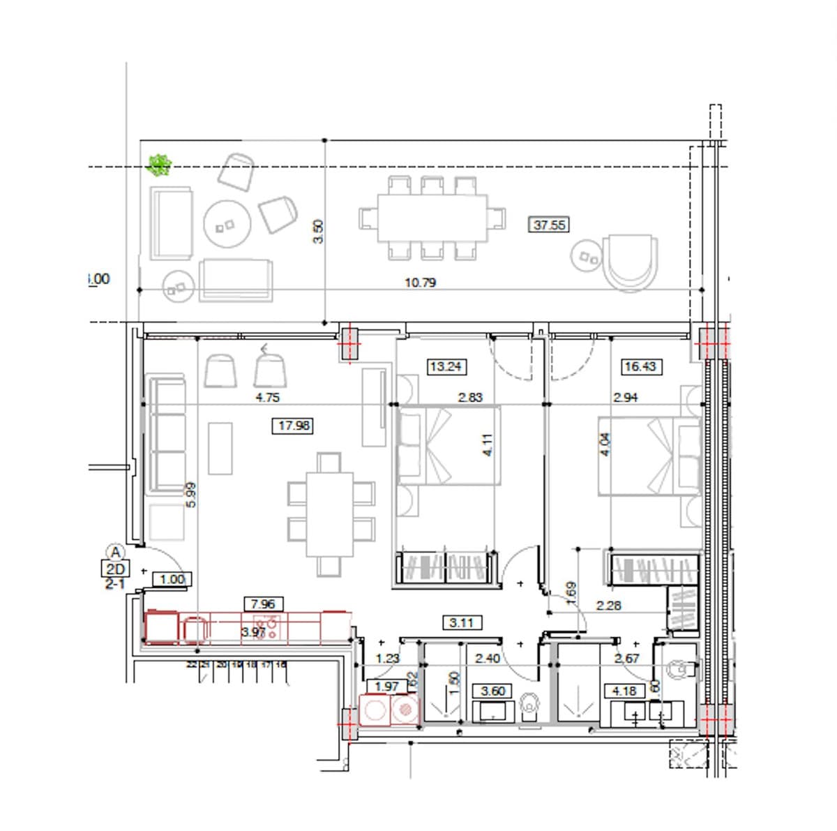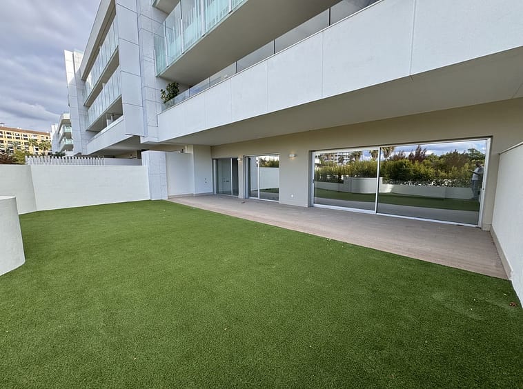 This 85 m² property offers 2 bedrooms, 2 bathrooms, a fully equipped kitchen, and a bright living room with direct access to its private garden. The complex features a swimming pool, landscaped areas, and parking.