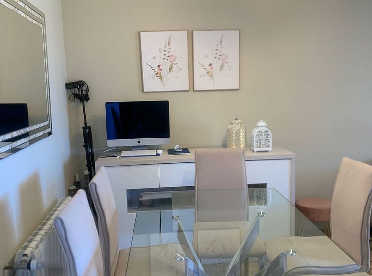 A beautifully renovated modern and bright kitchen comes fully equipped with all modern appliances with soft closing wall and base storage cupboards and drawer units which are of an Italian design and finished to a high-end quality, complete with contrasting worktop surfaces. Adjacent to the kitchen, a glass door leads onto a very useful utility room which houses the mains gas boiler, air con machine, washing machine, and more storage cupboards with worktop surfaces.