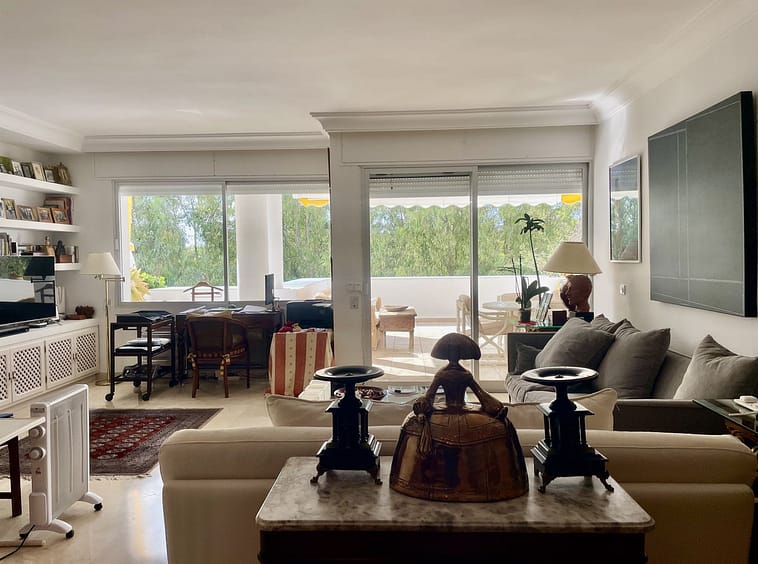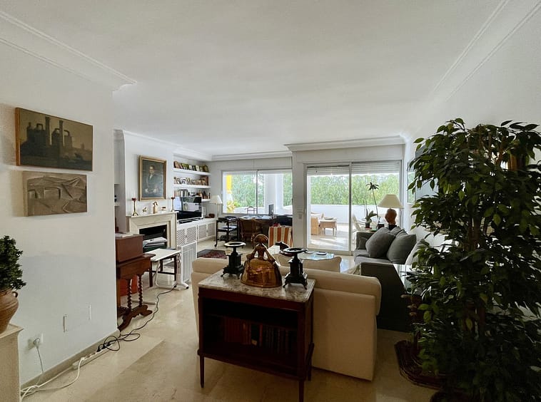 Wonderful 2 bedroom apartment in the heart of Guadalmina Alta, very close to Guadalmina Golf Club. Wide spaces, very big terrace, living room with fireplace. Comes with a parking space and storage room.