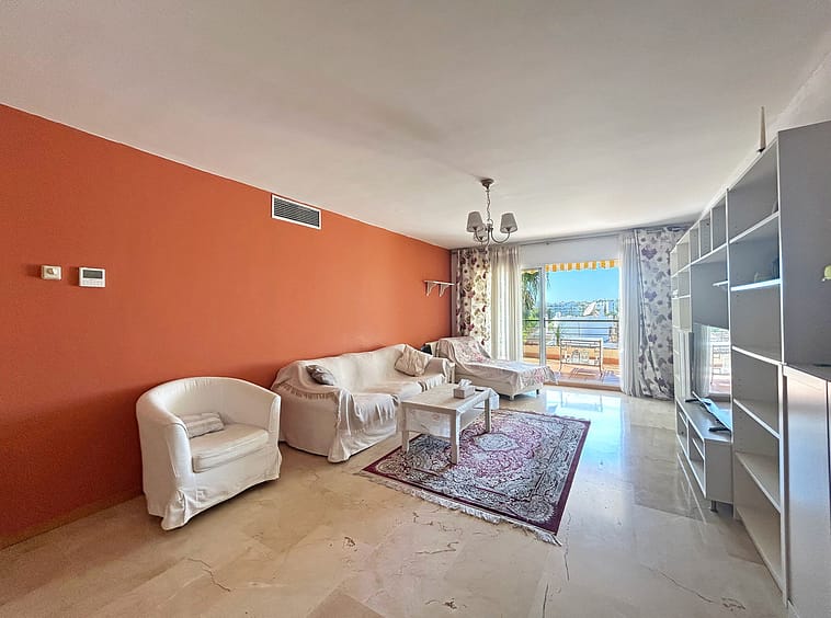 This apartment of over 90 m² offers a comfortable and bright layout, ideal for everyday living or as a second home on the Costa del Sol. It has two bedrooms and two full bathrooms, the master bedroom being en suite and with direct access to the terrace. The kitchen is separate and fully equipped, and the spacious living room has a dining area and access to a pleasant covered terrace of over 18 m² with unobstructed views and west-facing. A parking space is included.