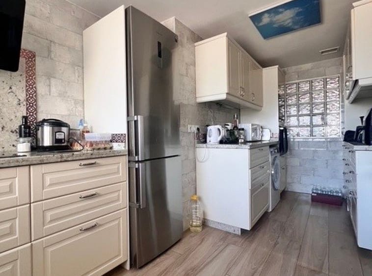 Sustainable living is prioritized with solar panels providing hot water, adding both energy efficiency and eco-consciousness to the property. The apartment also boasts new air conditioning, ensuring comfort year-round.