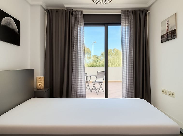 The property features 2 bright bedrooms and 2 contemporary bathrooms, along with an inviting open-plan living area that connects directly to a private terrace—ideal for relaxing, dining, or enjoying the Mediterranean climate. From the terrace, you also have access to your own private solarium, offering additional outdoor space for sunbathing or entertaining.