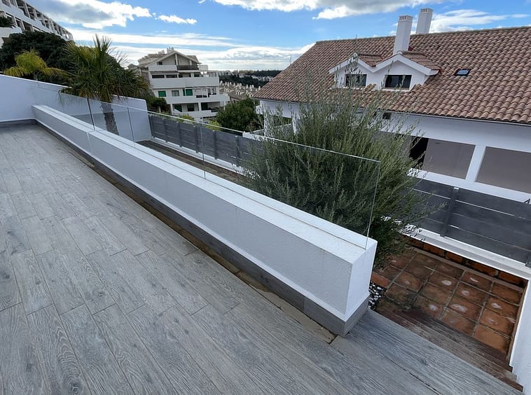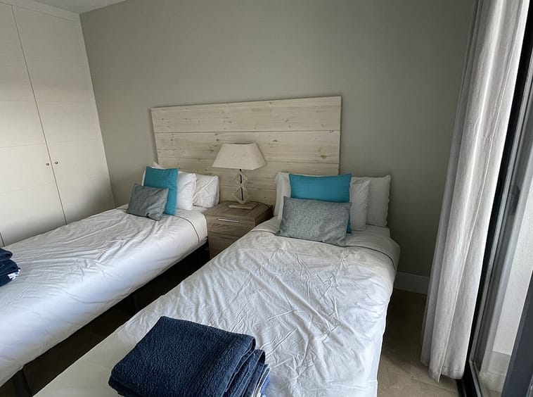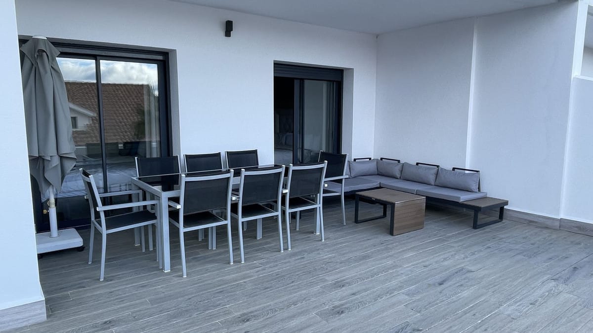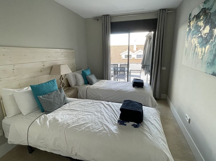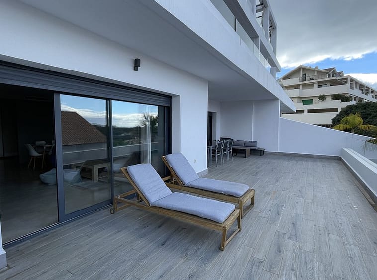 Master bedroom en suite and one guest bedroom with separate bathroom; both bedrooms leading to a terrace with beautiful partial sea views, Gibraltar and mountains.