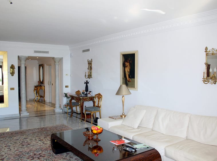 Impressive entrance hall. Cream marble flooring throughout, a/c hot and cold, satellite, and under floor heating throughout the apartment. Underground car parking for 2 cars and 1 storage area. Lift to all floors. 24 hour security with security guards en site. Video entry phone and alarm. Community services provided for maid service and maintenance – Premier desirable area – 5 minutes drive to Marbella centre and Puerto Banus and local amenities. STUNNING. MUST BE SEEN!