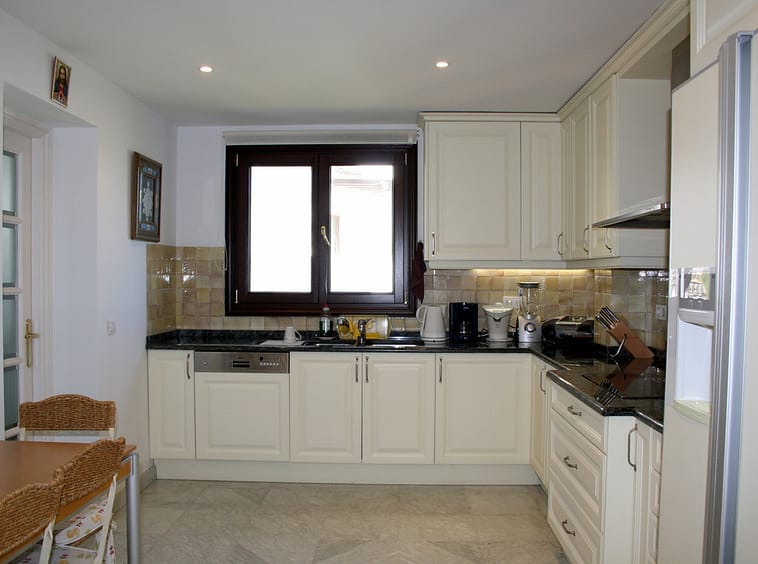 Exquisite lounge/dining area with open fire place feature, leading out to a superb sun terrace with sea and mountain views. Separate office /study off the dining area. Superb large terrace for dining "al fresco" or relaxing taking the sun. Awnings, mosquito screens and ceiling fans facilities. Beautiful fully equipped kitchen with top appliances, American fridge freezer and granite work tops. Separate utility area with washing machine and dryer.