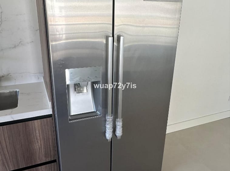 Inside, the apartment showcases impeccable craftsmanship and high-end contemporary design. The fully equipped designer kitchen features premium appliances by Miele, including a double American-style refrigerator, wine cooler, washing machine, and dryer. Every element has been carefully selected to combine functionality with refined aesthetics.