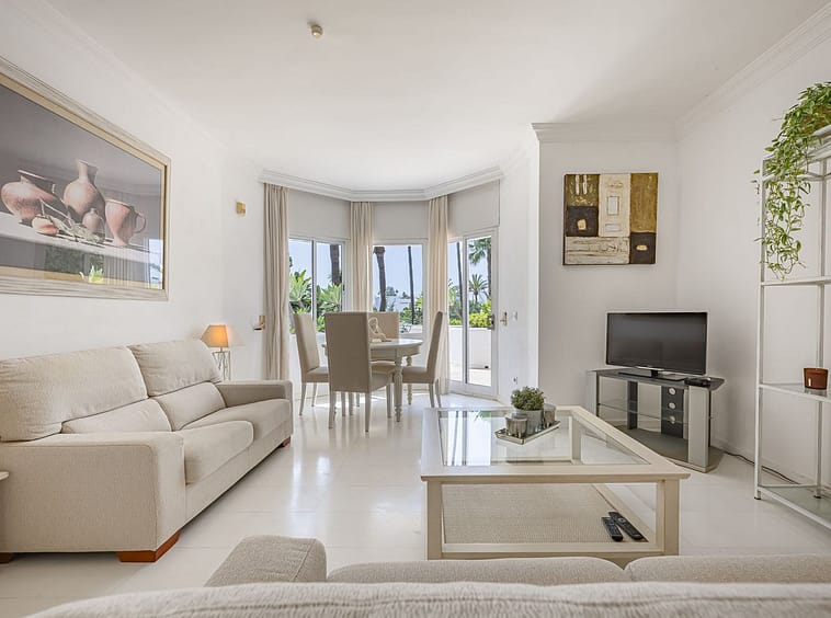 This bright and spacious middle-floor apartment is set within a prestigious development in Las Lomas del Marbella Club, offering 24-hour security, beautifully landscaped gardens, and three swimming pools, one of them heated.