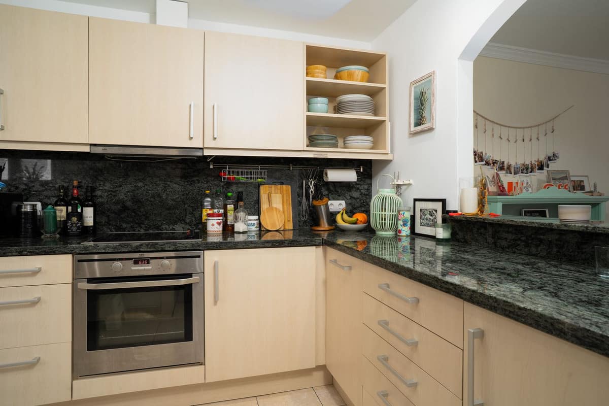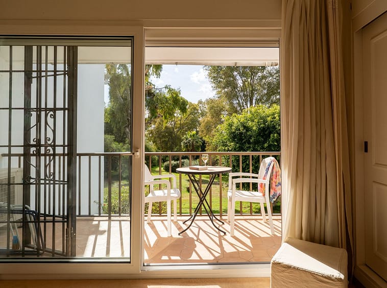 The south-facing orientation ensures abundant natural light throughout the day in both the living room and main bedroom, while offering open views over lush green areas with no buildings in front, guaranteeing privacy and an uninterrupted sense of space. Outdoor living is a key highlight, with two private balconies and a generous terrace, ideal for entertaining, dining al fresco, or simply enjoying the Mediterranean climate.