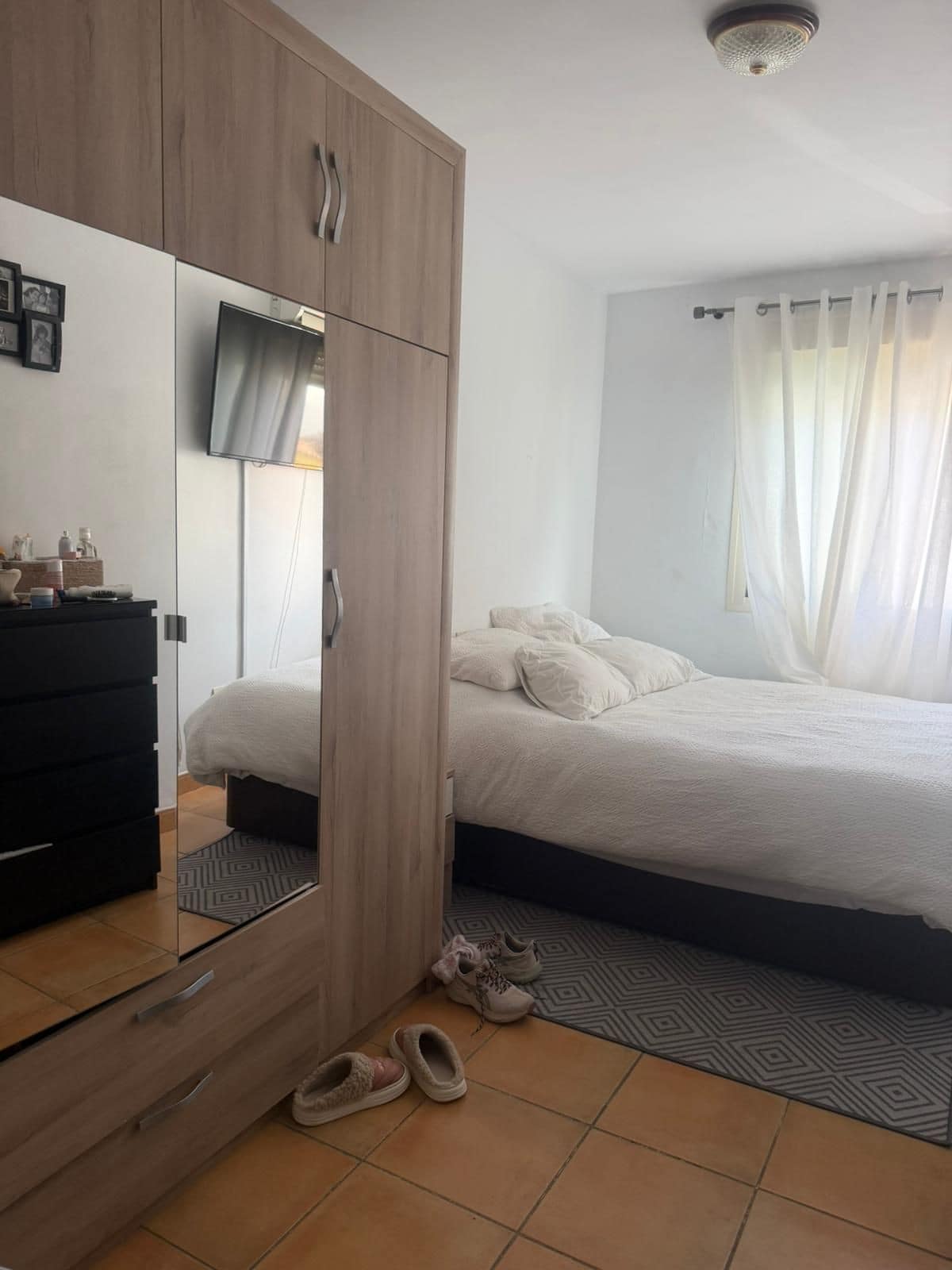 The home comprises two well-proportioned bedrooms, two bathrooms, a bright living room with direct access to a terrace and private patio, perfect for enjoying outdoor living in the Mediterranean climate. The property also includes a designated parking space and a storage room, providing practical convenience.