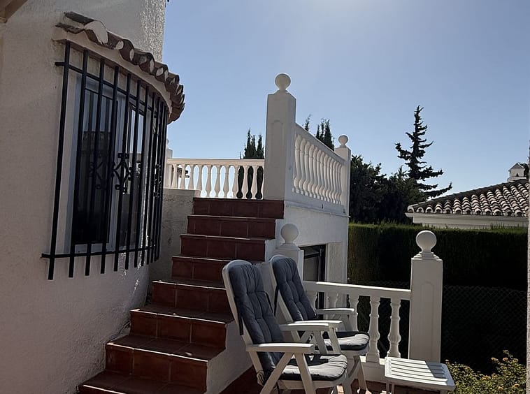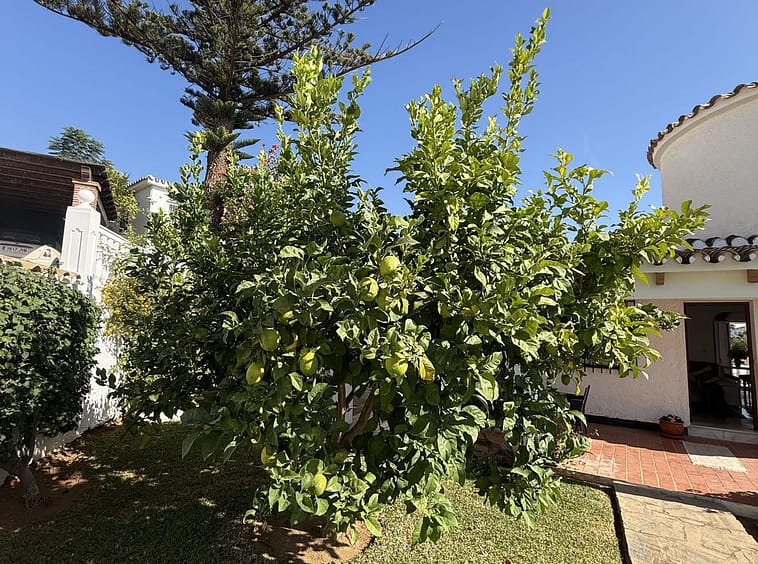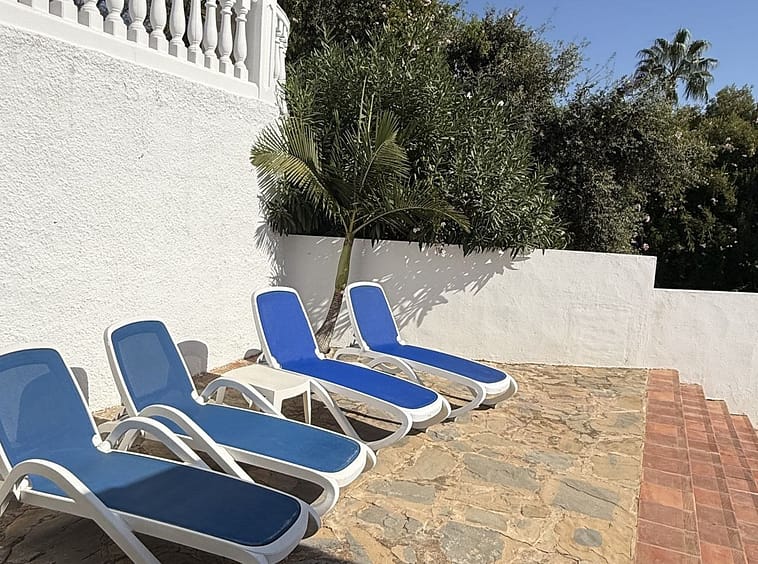 To the outside you will find lovely maintained gardens with mature lemon trees, around the rear of the property is the very private pool and solarium area where you can relax and unwind in total privacy.