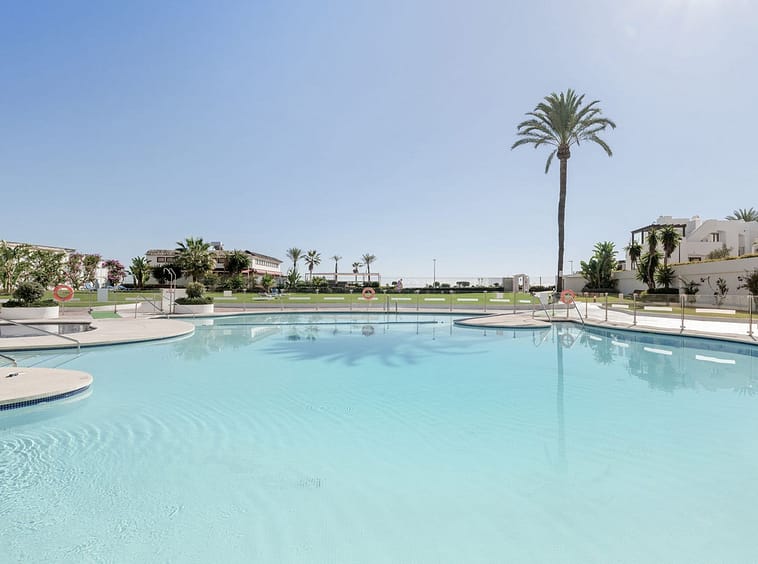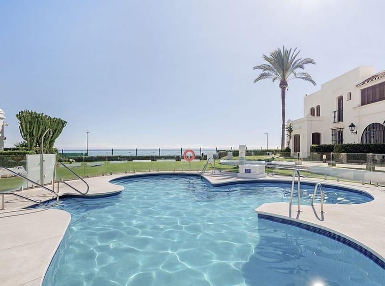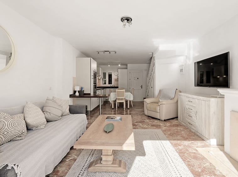 This well-presented two-bedroom townhouse sits in Villacana, a well-known beachfront community with a traditional Andalusian pueblo layout, calm pedestrian pathways, and plenty of greenery.