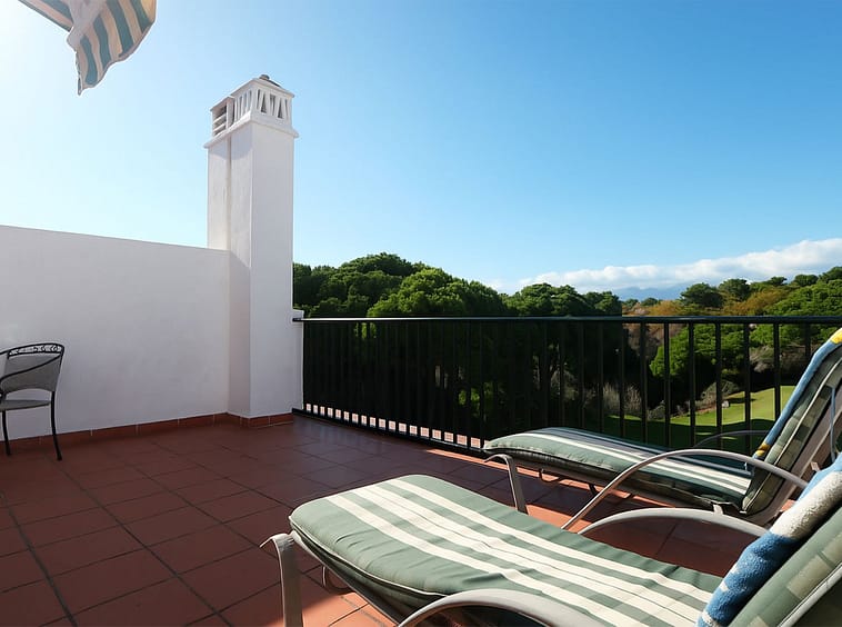 Large terrace doors slide open onto the larger terrace which enjoys morning sun, equipped with its outdoor chillout