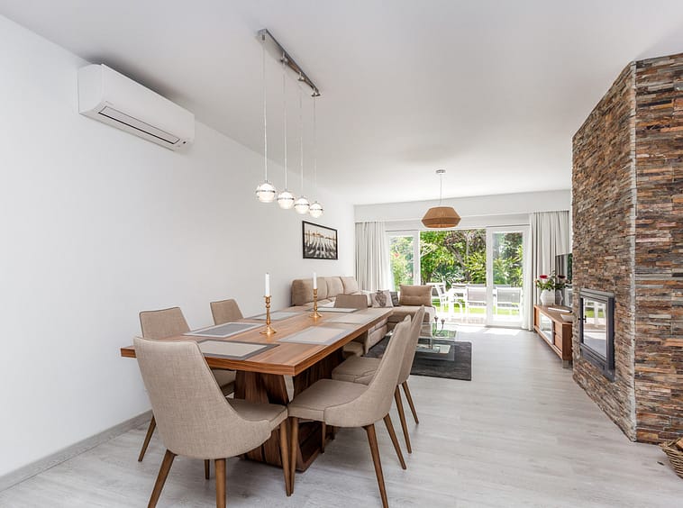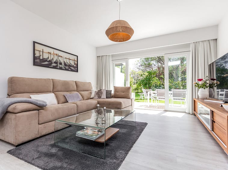 Frontline golf, fully renovated townhouse in Peñablanca, a gated complex by the Aloha Golf Club, Nueva Andalucía, just 3km away from Puerto Banús. Southwest facing and built on 2 levels, property comprises: entrance hall; living/dining room with fireplace and access to the private terrace and garden; open-plan modern kitchen with independent laundry area; 2 bedrooms; 2 bathrooms. A carport for one car. Independent A/C in every room. A fantastic and relaxing golf property just 5 minutes from the beach.