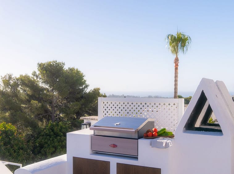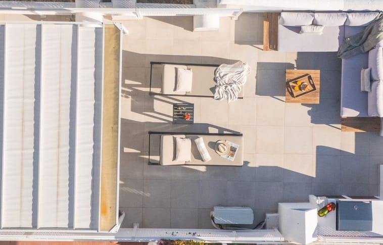 Spanning three levels, the residence features multiple inviting outdoor areas designed for both relaxation and entertainment. A terrace on the main floor is ideal for enjoying coffee at sunrise or dining al fresco with panoramic vistas. The expansive rooftop terrace offers a private sunbathing oasis or the ultimate setting for evening gatherings beneath the Mediterranean sky.