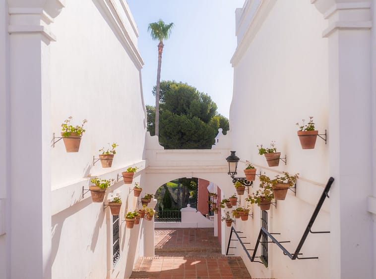 Aloha Pueblo is a unique development inspired by the charm of a classic Andalusian village. Built in the late 1980s, the community features cobbled streets, whitewashed facades, flower-filled walkways, and tranquil squares. It combines timeless aesthetics with modern comforts, including a communal swimming pool, landscaped gardens, and 24-hour security with surveillance and on-site guards.