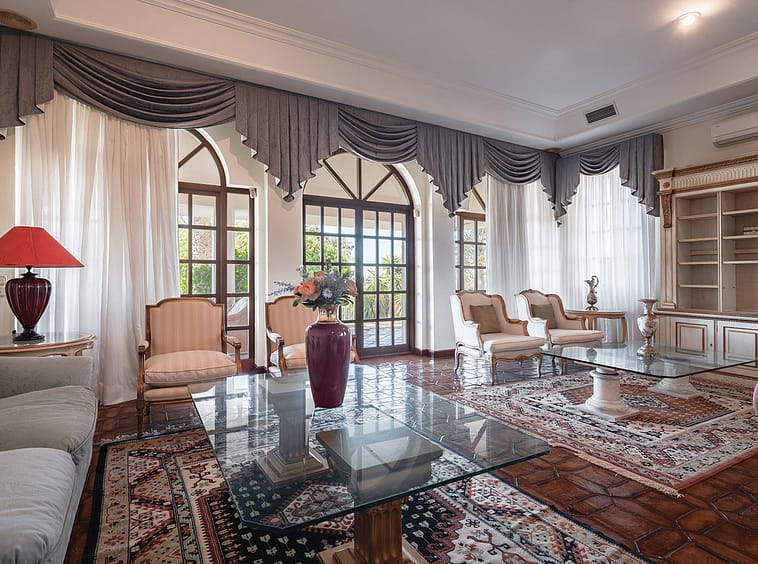 Situated within the prestigious enclave of La Capellanía, in the heart of Marbella’s Golden Mile, this magnificent Mediterranean-style estate rests on an expansive 7,505 m² plot, enjoying breathtaking views of the sea, the majestic La Concha Mountain, and the property’s own mature gardens. With a total built area of 1,811 m², the residence perfectly blends timeless Andalusian charm with generous proportions and refined elegance. It boasts 20 bedrooms in total, including guest and staff accommodation.