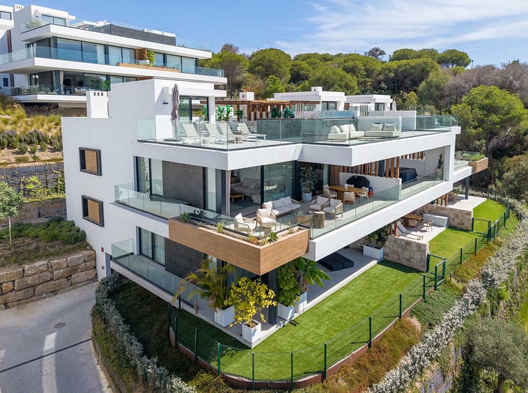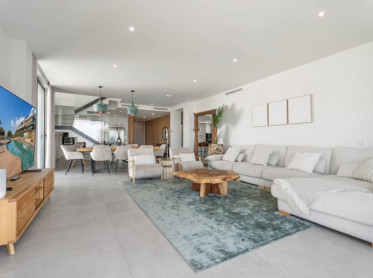 This contemporary duplex penthouse in Marbella East is thoughtfully designed across two levels, combining modern architecture with well-defined living spaces. Every detail has been considered to maximize natural light, seamless indoor-outdoor living, and privacy.
