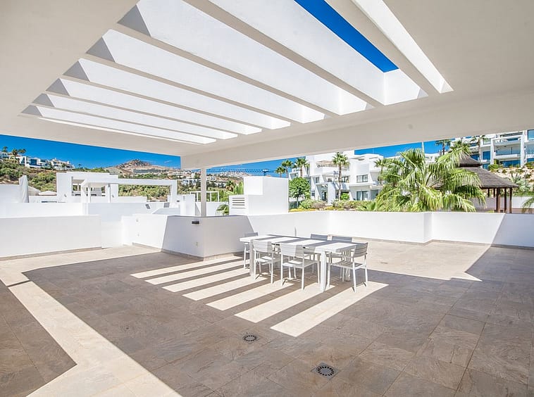 Located in the sought-after Atalaya area of Benahavís, just minutes from the picturesque town of San Pedro de Alcántara, this luxury duplex penthouse is built to the highest modern standards and boasts stunning views across the golf course towards the sea.
