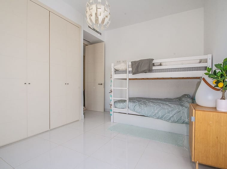 The lower level features a spacious lounge opening onto a large, sunny terrace, a sleek open-plan kitchen with utility area, and three bedrooms – including a master suite with en-suite bathroom and two guest rooms sharing a modern family bathroom. Upstairs, the property impresses with an extraordinarily large roof terrace, offering panoramic vistas of the golf course and the sea to the south side, and serene views over the communal pool to the north. Conveniently positioned within the complex, the penthouse allows for easy access to the pool area directly from the entrance side of the building. Additional features include air conditioning and an underground private parking space, a storage room. This exclusive gated community boasts beautifully landscaped gardens, a serene outdoor pool, indulgent sauna and steam facilities, a traditional hammam, and an elegant outdoor bar area designed for refined leisure and entertainment.
