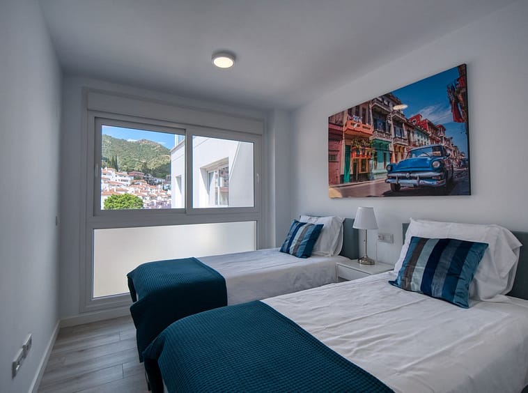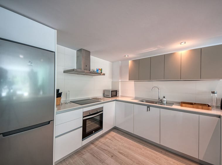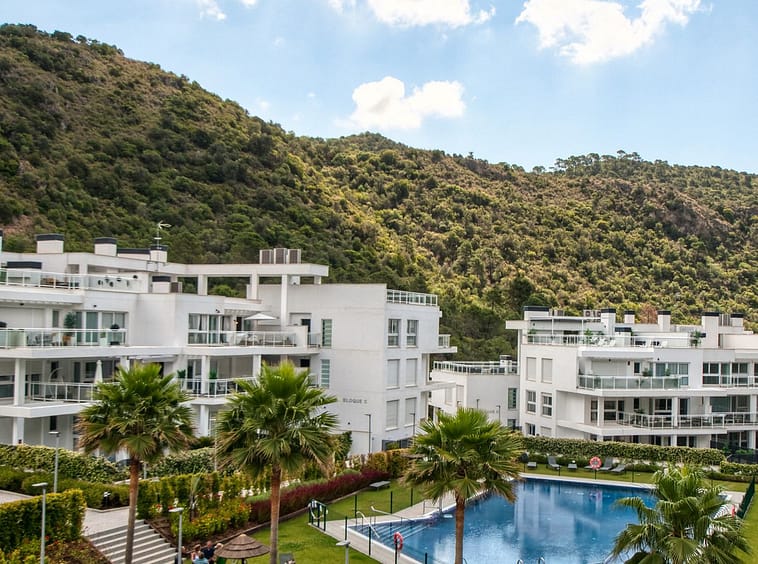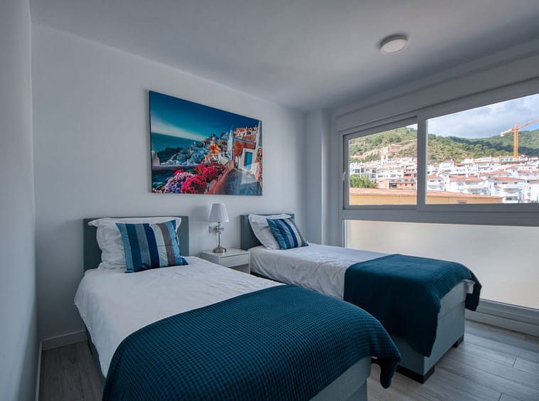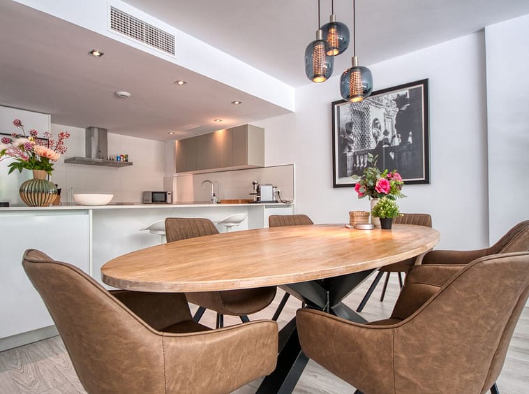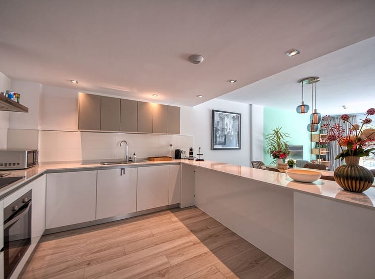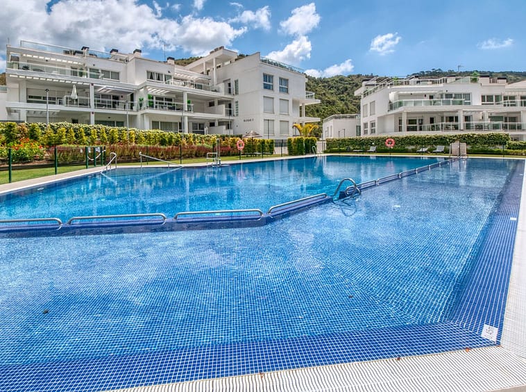 Spacious penthouse in Benahavis with the following layout. The main floor features an open-plan living area leading to a terrace with views over the pool and village. The modern kitchen is fully equipped with top-of-the-line appliances and additional storage.