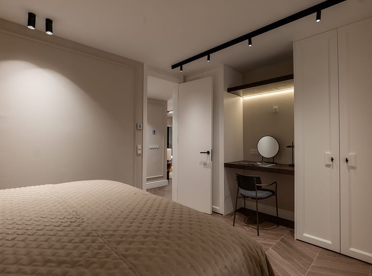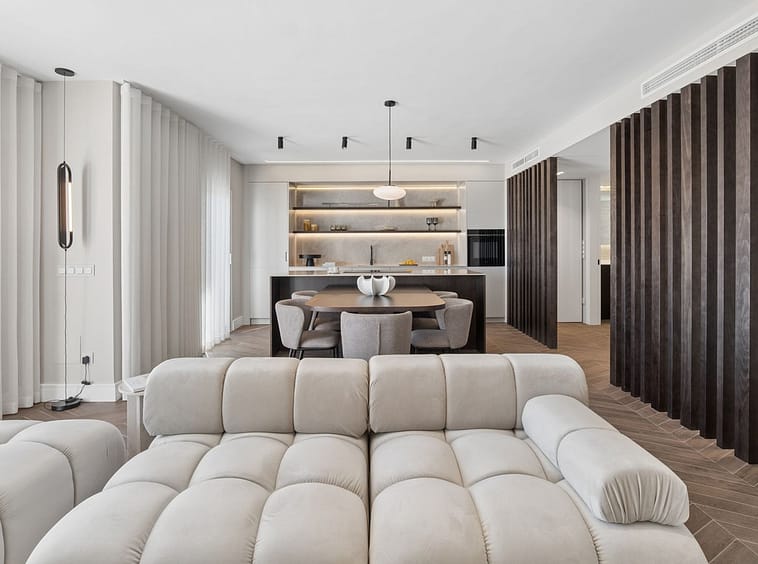 The property offers three bedrooms and two stylish bathrooms, both fitted with underfloor heating for year-round comfort. The recent renovation has been completed to an exceptional standard, featuring a bespoke kitchen, custom carpentry throughout, and an advanced Air Zone climate system.