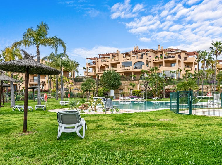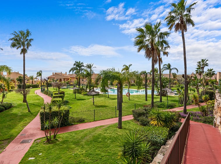 The property is set within a mature and beautifully maintained development with four communal swimming pools and manicured gardens, offering a peaceful and private environment.