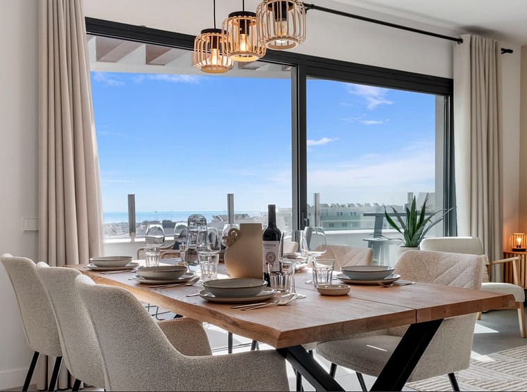 Nestled within the prestigious Calanova Golf community, this exquisite penthouse duplex promises a luxurious lifestyle, enveloped in the serene beauty of the Spanish countryside. With 3 spacious bedrooms and 2 elegant bathrooms, this property exemplifies modern sophistication fused with traditional charm. As you step into this unique residence, you're immediately greeted by a sense of openness and light, courtesy of its expansive design and large windows. The lower level features a bright and airy living area that seamlessly combines the living and dining spaces, perfect for both entertaining and relaxation. Tasteful decor, combined with high-quality finishes, creates an inviting atmosphere. Adjacent to the living area, an elegantly appointed kitchen awaits, boasting top-of-the-line appliances and ample counter space topped with beautiful stone surfaces—ideal for the culinary enthusiast. The spacious living area flows effortlessly to a cozy terrace, where breathtaking panoramic views of the lush greens of Calanova Golf and the sparkling Mediterranean Sea can be enjoyed. This is the perfect setting for morning coffees or evening gatherings under the stars. As you make your way upstairs, you will discover the private sun terrace, offering another vantage point to soak in the stunning vistas. The 3 bedrooms are generously sized, providing flexibility for guests, family, or even a home office. This penthouse duplex is designed with comfort and convenience in mind, featuring air conditioning throughout, quality built-in wardrobes, and secure underground parking. The property also boasts access to communal areas, including beautifully landscaped gardens and a sparkling swimming pool, enhancing the overall living experience. Located just a short drive from the picturesque beaches of La Cala de Mijas and the vibrant town of Fuengirola, residents here enjoy the best of both worlds—the tranquility of residential life paired with the excitement of coastal living. A wealth of amenities, including shops, restaurants, and recreational facilities, are all within easy reach. Whether you seek a holiday retreat, a family home or an investment opportunity, this penthouse duplex in Calanova Golf offers unmatched luxury in a breathtaking setting. Fully furnished, 2 car spaces, storage and a tourist licence is in place! Don't miss the chance to make this dream property yours. Schedule a viewing today and experience the allure of this remarkable home firsthand!