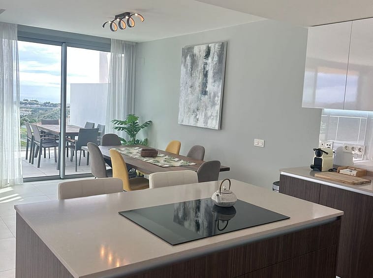 This STUNNING LUXURY APARTMENT is one of the best located within this gated urbanisation (One Residence) providing commanding PANORAMIC GOLF & SEA VIEWS. There are THREE SPACIOUS DOUBLE BEDROOMS, ALL EN-SUITE, plus a guest bathroom. As soon as you enter through the main door, there are SEA AND GOLF VIEWS from the hallway to the lounge and open plan kitchen area, through to the large open (partially covered) terrace. The apartment is being SOLD FULLY FURNISHED, which is of very high quality. There is UNDER FLOOR HEATING THROUGHOUT, air-conditioning with INDIVIDUAL ROOM CONTROL, remote control cooker, Bang & Olufson TV, etc. No expense has been spared to make this a totally unique experience in Costa Del Sol living. In addition, there is a myriad of high quality and very well maintained facilities including a lagoon pool, an infinity pool, one INDOOR HEATED POOL with Jacuzzi and sauna, a well stocked bodega, a meeting room with WiFi connection, a LUXURY CINEMA, a chill out bar, a GOLF INDOOR SIMULATOR, an outdoor children's play area, plus a state of the art gymnasium. There are TWO private underground parking spaces and one store room included in the price. In addition, there is a lovely restaurant in the golf clubhouse next door to the urbanisation that is open all day. So if you are looking for a luxury apartment with FABULOUS GOLF AND SEA VIEWS, then please call us to arrange a viewing. Reasonable offers considered.