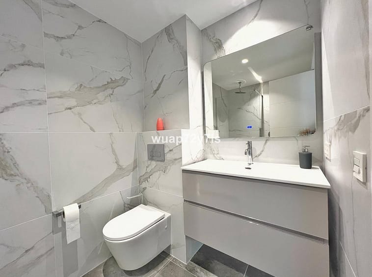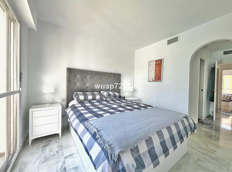 This three-bedroom apartment is located in the Costalita urbanization in Estepona. As you enter the apartment, you’ll find the living room on your left, which opens up to a terrace overlooking the pool. On the right-hand side, there is a fully equipped kitchen with a small laundry room. Walking straight down the hallway, you’ll come to three bedrooms and two bathrooms. One of the bedrooms features an en-suite bathroom for added comfort. Residents of the urbanization also have access to a shared swimming pool.