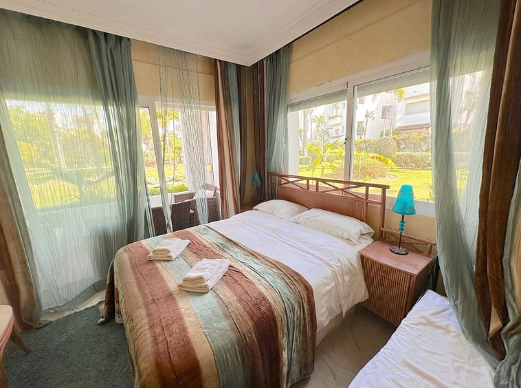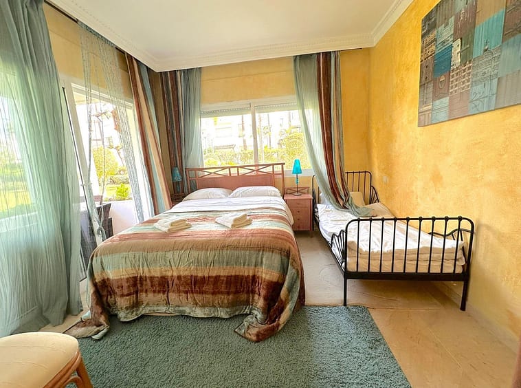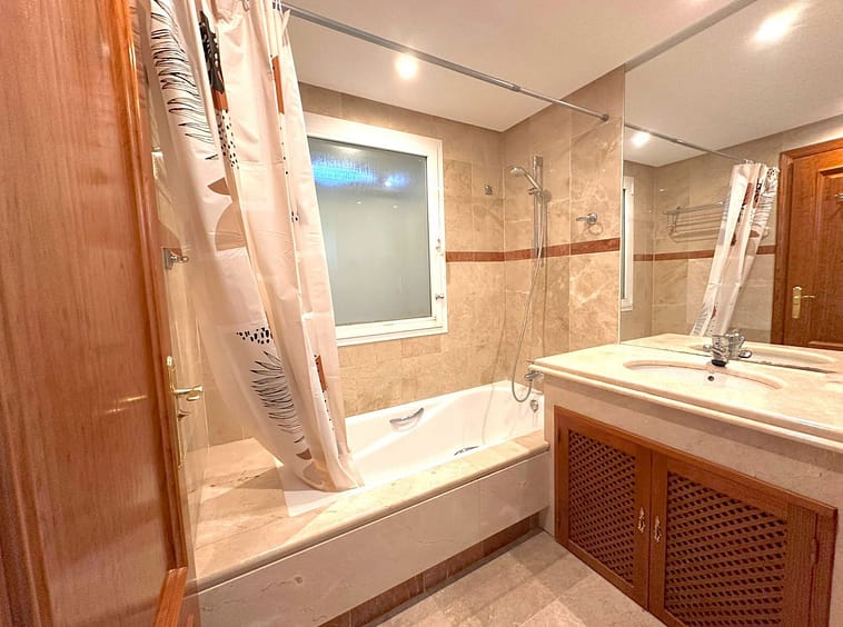 Upon entering, you immediately feel the spaciousness and brightness thanks to the well-thought-out layout. The apartment has three bedrooms, each generously sized, ideal for providing maximum comfort to its residents. The master bedroom features an en-suite bathroom, finished with high-quality materials, including a modern shower and a large bathtub, creating the perfect space to relax after a busy day. The other two bedrooms also have en-suite bathrooms, ensuring privacy and comfort for all family members.