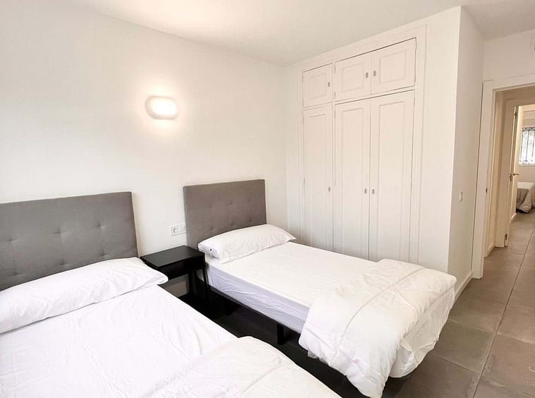 This beautiful three bedroom, ground floor apartment is offered unfurnished and has been renovated throughout to include a spacious living, dining area leading onto its private terrace area overlooking the mature beautifully manicured gardens and communal swimming pool. Contemporary open plan kitchen fully fitted with high quality appliances. Three spacious bedrooms with two modern bathrooms, one of which is en-suite and fully fitted wardrobes. Separate utility room and private parking street parking leading directly to the property. Hot and cold air conditioning throughout.