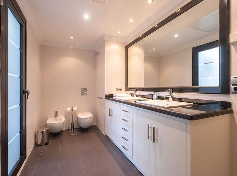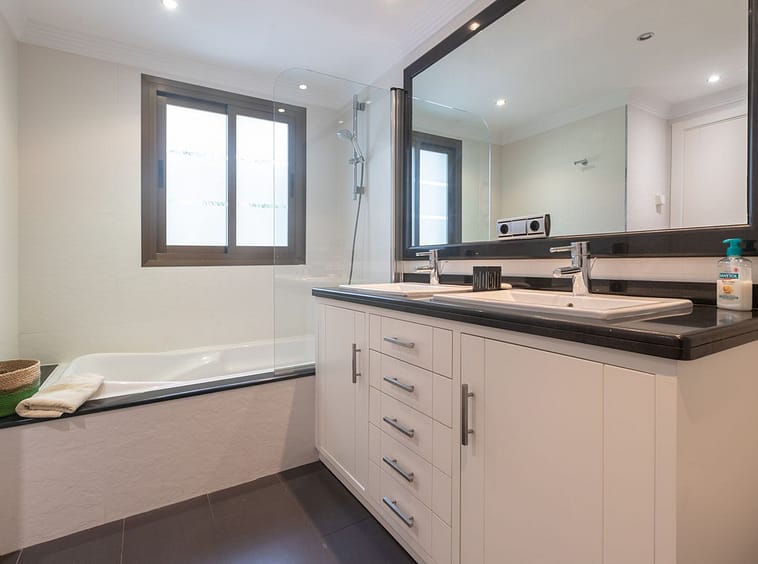 On the first floor we find two bedrooms, both with en-suite bathrooms and access to an open terrace, which also has a barbecue.
